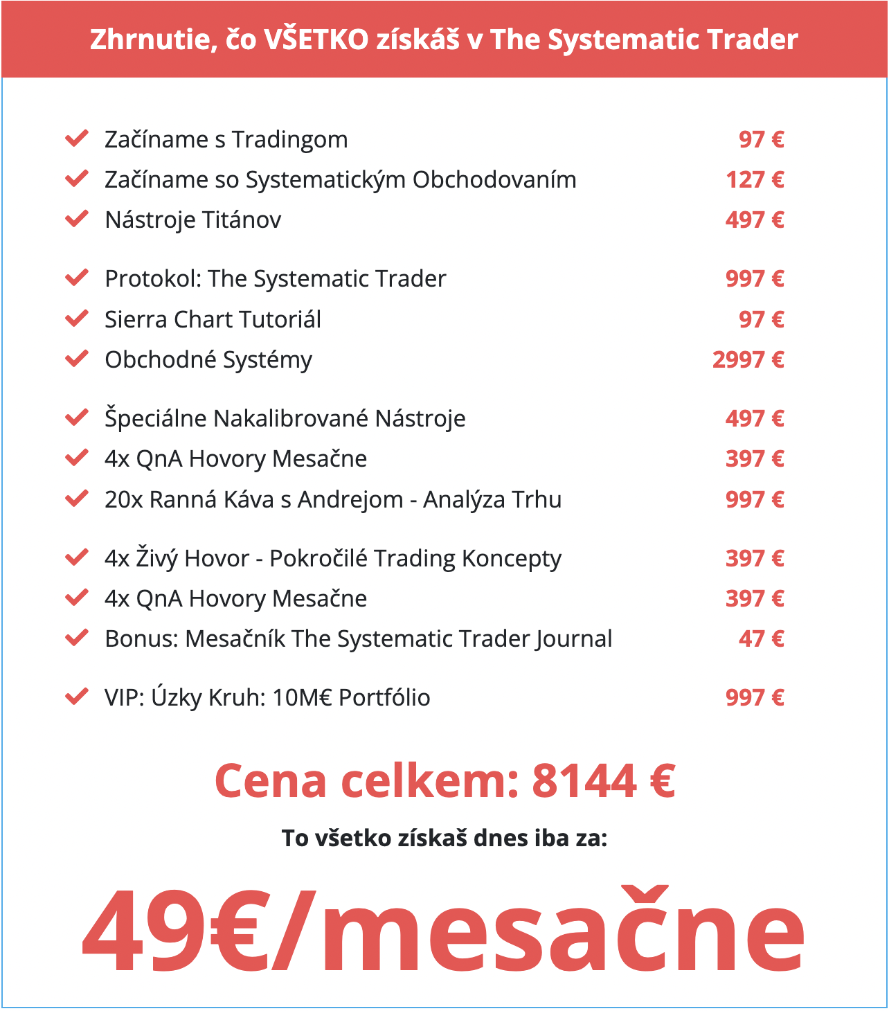 V komunite The Systematic Trader sa s tebou podelím o svoje mnohoročné skúsenosti z finančných trhov a pomôžem ti porozumieť obchodovaniu, ktoré skutočne funguje.